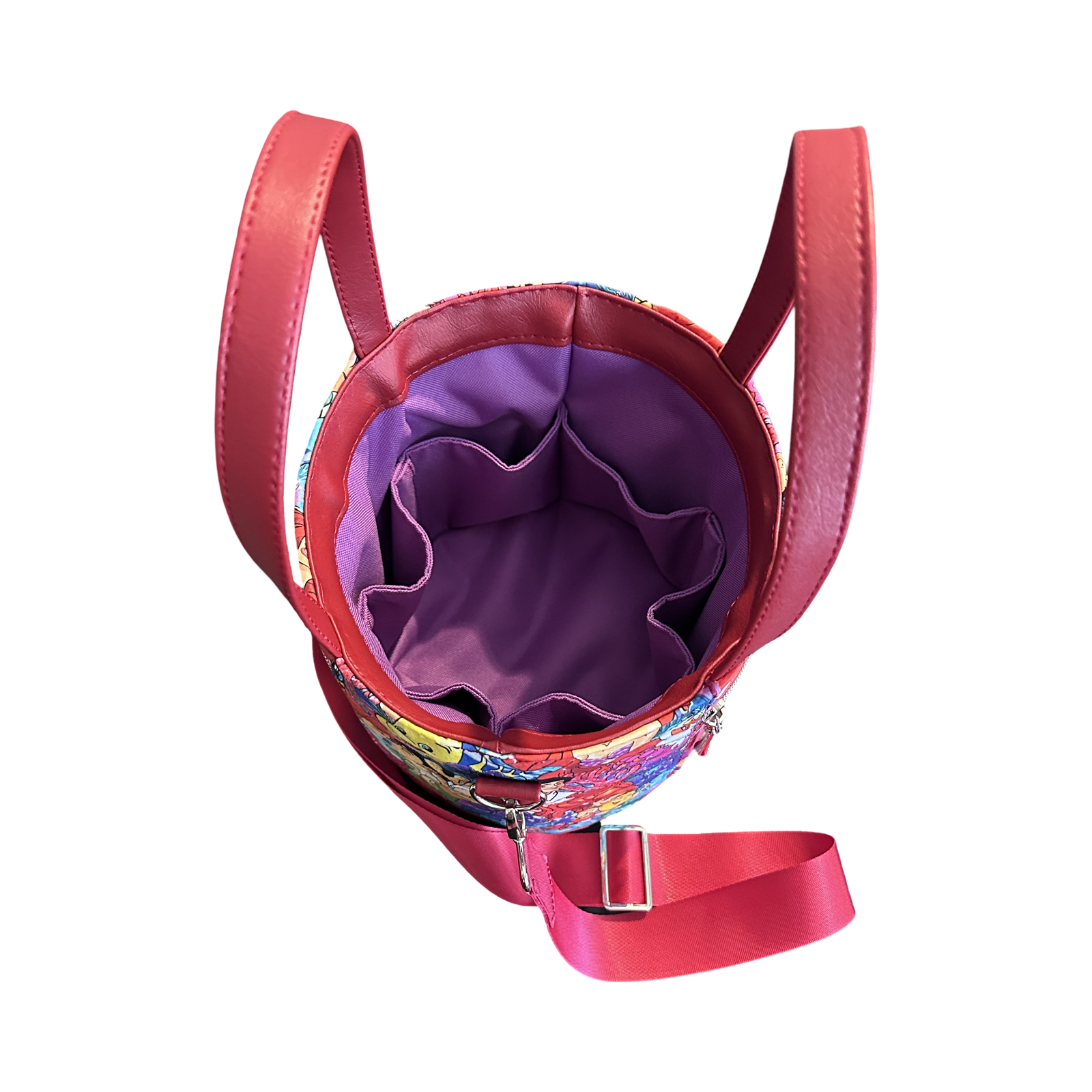 This bag is made from cotton fabric, vinyl, and waterproof canvas for the lining